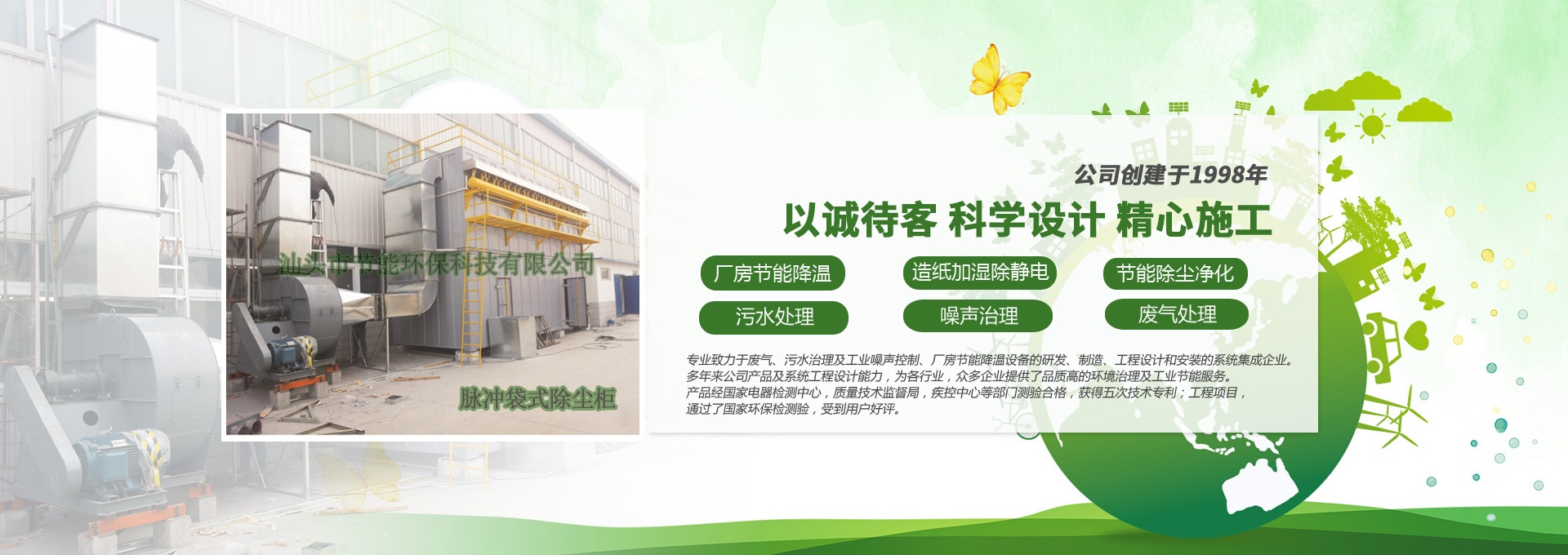 汕頭市節(jié)能環(huán)保科技有限公司創(chuàng)建于1998年,是一家專(zhuān)業(yè)致力于廢氣、污水、粉塵、噪聲治理,廠房節(jié)能降溫設(shè)備的研發(fā)、制造、工程設(shè)計(jì)和安裝的系統(tǒng)集成企業(yè)。多年來(lái)公司產(chǎn)品及系統(tǒng)工程設(shè)計(jì)能力,為各行業(yè),眾多企業(yè)提供了品質(zhì)高的環(huán)境治理及工業(yè)節(jié)能服務(wù)。產(chǎn)品經(jīng)國(guó)家電器檢測(cè)中心,質(zhì)量技術(shù)監(jiān)督局,疾控中心等部門(mén)測(cè)驗(yàn)合格,獲得五次技術(shù)專(zhuān)利;工程項(xiàng)目通過(guò)了國(guó)家環(huán)保檢驗(yàn)檢測(cè),受到用戶好評(píng)。